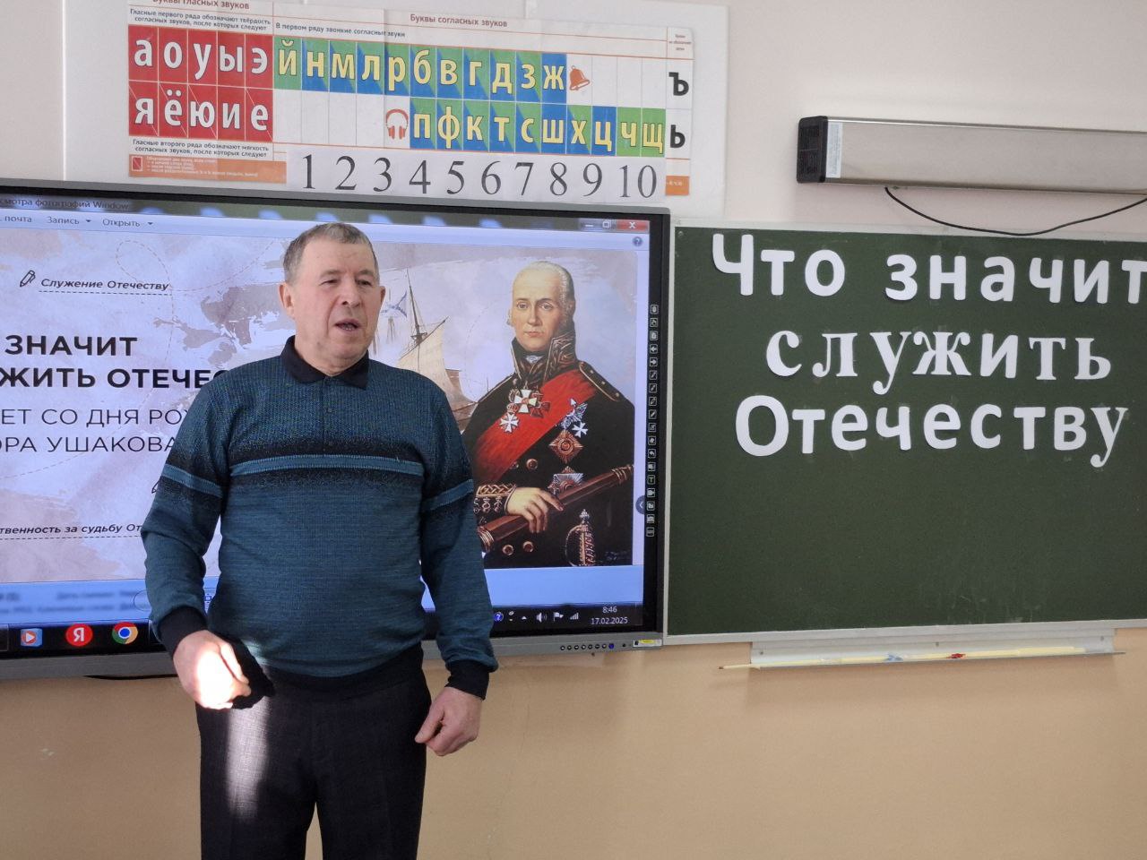 17 февраля 2025 года в Крымской школе прошли внеурочные занятия в рамках проекта Разговор о важном по теме "Что значит служить Отечеству?180 лет со дня рождения Ф.Ушакова».