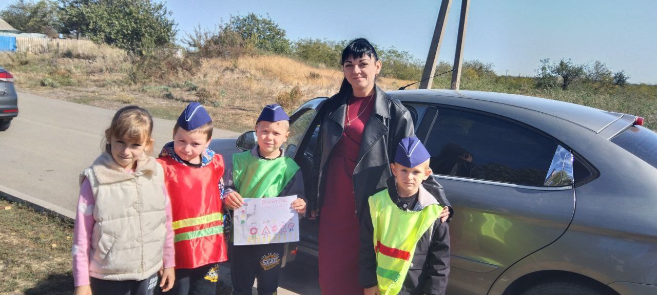 В рамках акции по ПДД " Внимание водитель" воспитанники детского сада вручили листовки водителям.